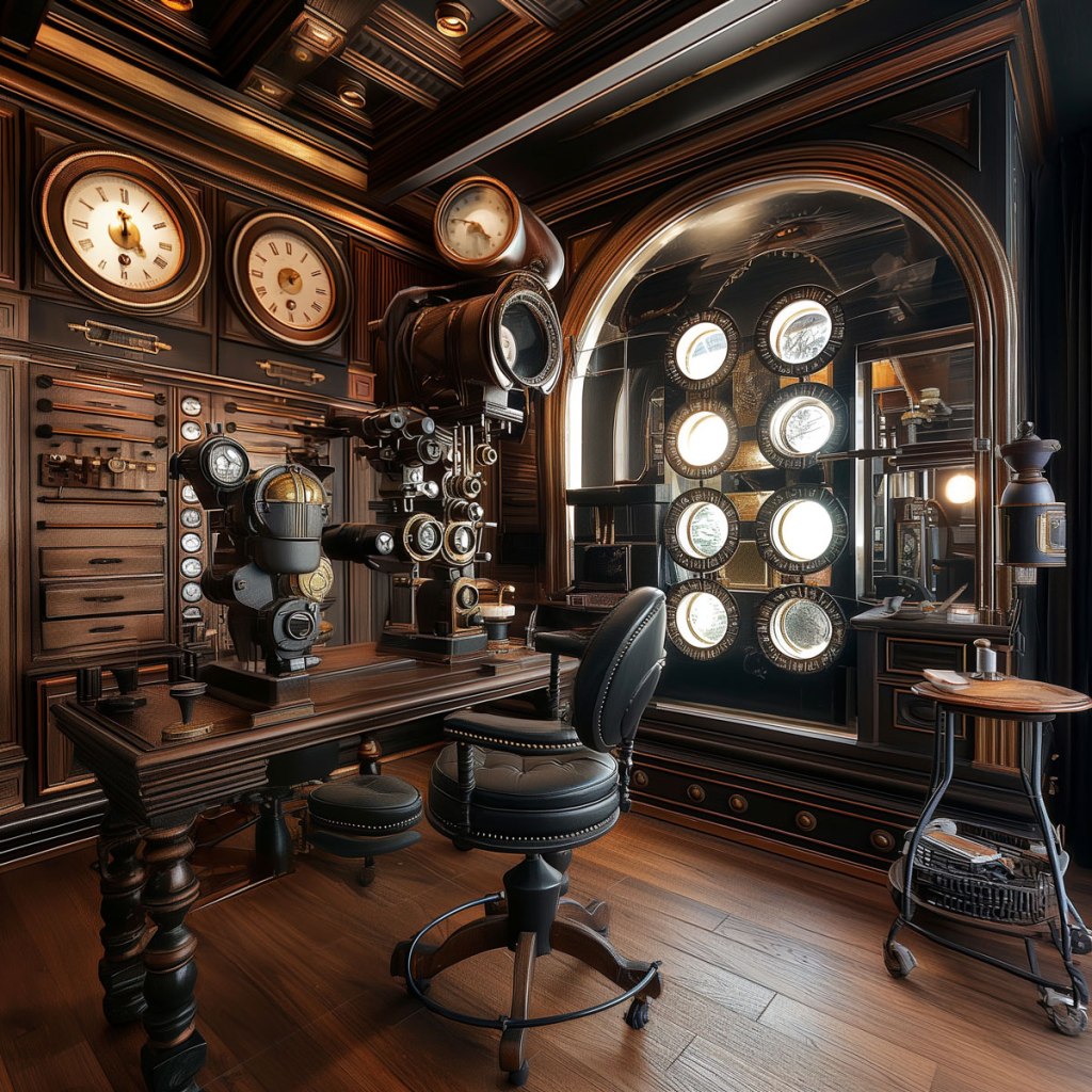 Dr. Bolt’s office wasn’t like any other eye doctor’s place you’d see; it was a steampunk wonderland! In the center, there stood a huge, mechanical monstrosity for eye exams, with all sorts of dials and levers that Dr. Bolt would adjust with a careful touch. The waiting area had comfy, leather armchairs and bookshelves filled with mysterious, old books and gadgets, making waiting for your turn not boring at all. Visiting Dr. Bolt was more like an exciting trip to a world where science and imagination blended together perfectly.