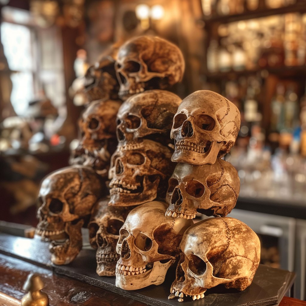 The barkeeper was the guardian of these stories. To any curious soul brave enough to ask, he would recount the tales of each skull, his voice a blend of reverence and sorrow. The first skull belonged to a notorious outlaw known for his quick draw, the second to a fearless sheriff who met his end in a duel at dawn. As the stories unfolded, the identities of the remaining skulls came to light: miners, cowboys, and even a wandering bard, each with a tale as rugged as the landscape they once roamed.